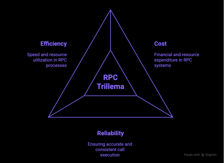 Just like the blockchain trilemma (scalability vs security vs decentralization), RPC infrastructure faces its own balancing act between three key attributes: